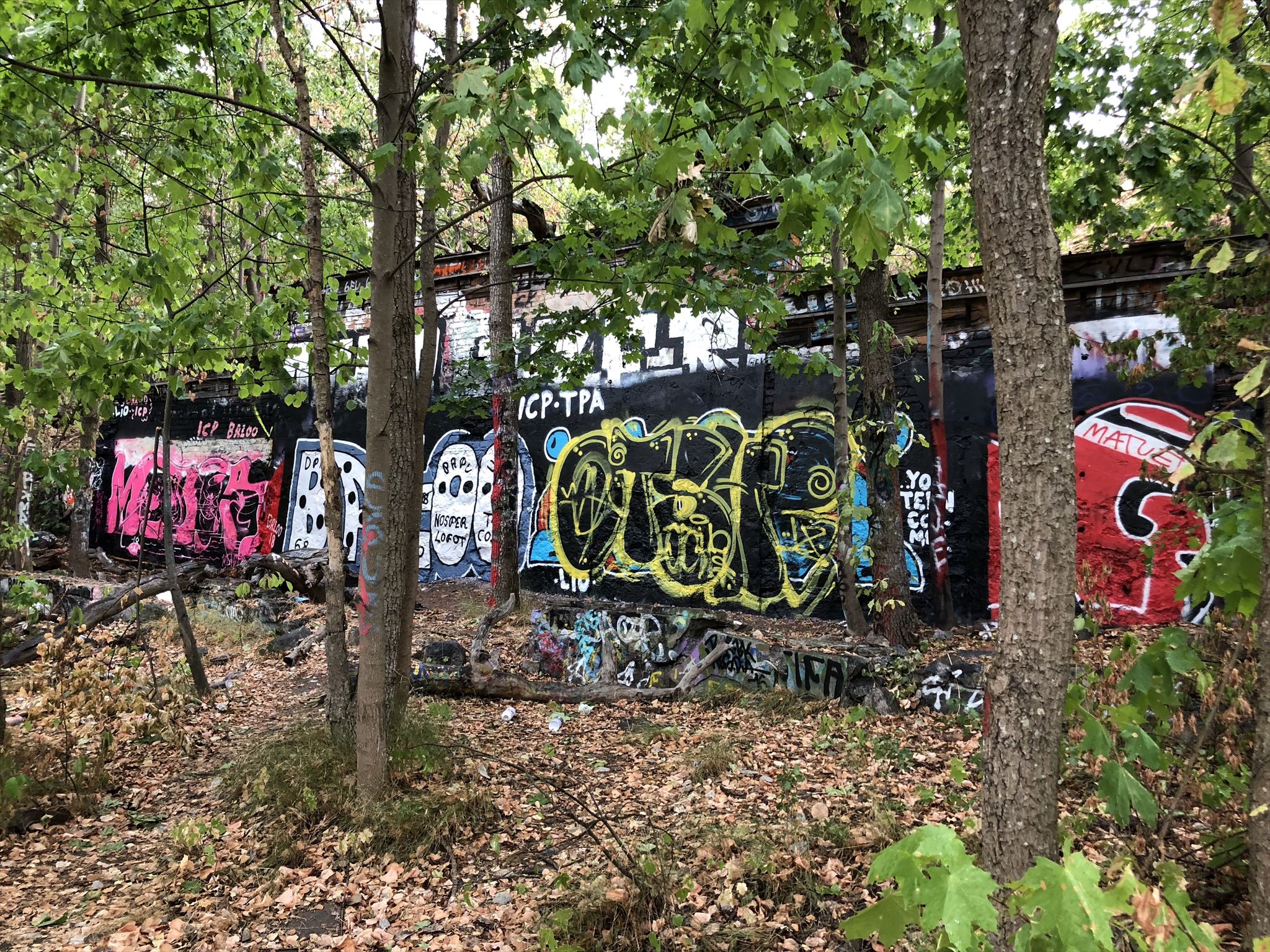 Do not despair even if you happen to find yourself in the midst of the disgusting so-called nature, as there are glimmers of hope even there. KSMB invites you to an oasis of aerated concrete in the middle of the nasty nature, indeed concrete of all kinds of colors. Here you can philosophize in the nude and sacrifice a beer to the punk gods. Unfortunately, there may be disturbing birds chirpings but if you perk up your ears properly, you might hear the harmonious sound of rubber against hard asphalt from Bergshamravägen. When you are done exploring your bellybutton, take a look at the north side of the Berlin Wall. There you will find a codeword behind the only moving part if you look really carefully.