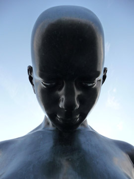 Socha má podobu ženy dotýkající se pouhými několika body země a vytvářející tak zdání levitace nad zemí. Barva "po ostravsku" černá. Ze sochy sálá klid a odevzdanost. Lesklý podklad znázorňuje vodu jakožto symbol očisty. Autorem je sochař David Moješčík a výroba sochy mu trvala více než rok.