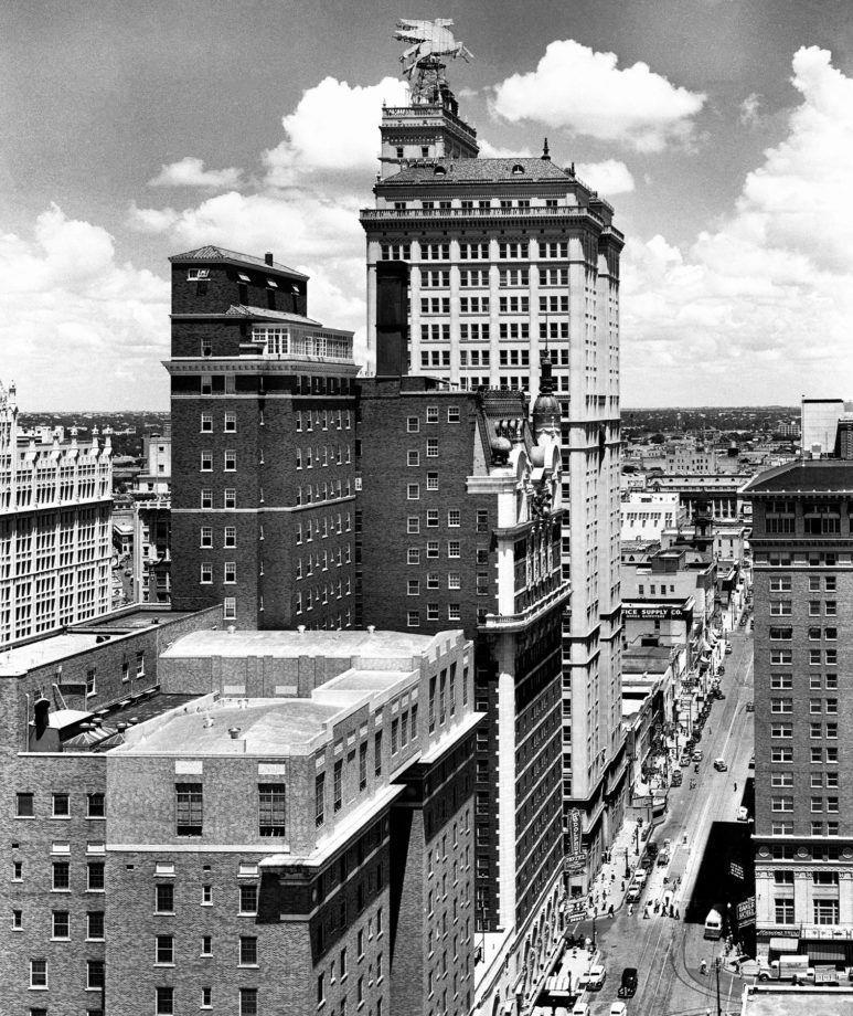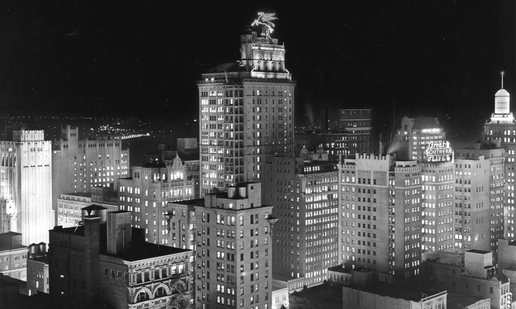 The Flying Red Horse sits atop the Magnolia Building in the 1940s