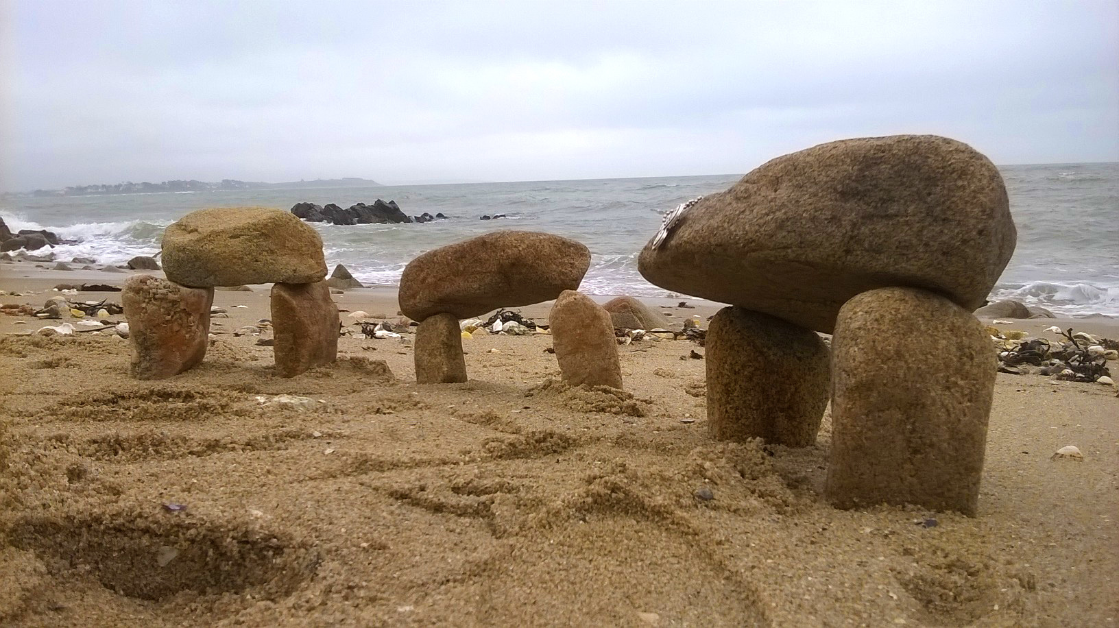 #1 : At waypoint "Traezh", build your own mini-dolmen with the pebbles close to you (see picture below). If one or more dolmen are already here, just add yours. Take a picture of the whole. This photo can be attached to your log.