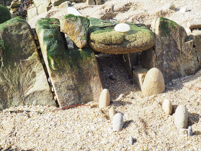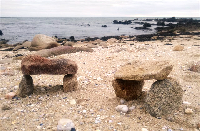 #1 : Au waypoint "Traezh", construisez vous-même votre dolmen miniature à l'aide des galets tout proche (exemple en photo ci-dessous). Si un ou plusieurs dolmen sont déjà présent, rajoutez simplement le vôtre à l'ensemble. Prendre le tout en photo pour le publier avec votre log.