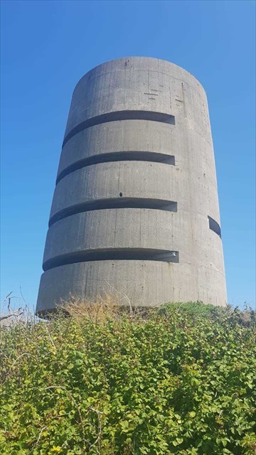 Many of the Batterie Dollmann fortifications can still be seen today. Dominating the headland is the German Naval observation and range-finding tower MP3. Peculiar to the Channel Islands, these huge naval direction-finding and signalling stations were known to the German forces as ‘Marinepeilstaende (MP) und Messetellungen’. It was intended that these towers be built on high points all around the coastline of Guernsey, Jersey, and Alderney to provide a complete monitoring chain; in the event, by the end of the Second World War, only seven had been completed. Each observation slit of a tower observed for one particular battery and was fitted with range-finding equipment. MP3 has five observation levels and had a radar unit on the roof. The original rangefinders are still onsite and in working order.
