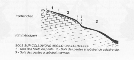 The origin of the kimmeridgian begins at the beginning of the formation of the Parisian basin. The seas follow each other with sedimentary contributions. The peculiarity of this geological ensemble is its so-called "pile of plates" structure, the result of this superposition. The Kimmeridgian is thus an alternation of marls and marly limestones characterized by the abundant presence of a small oyster in the form of a comma, the exogyra virgula.