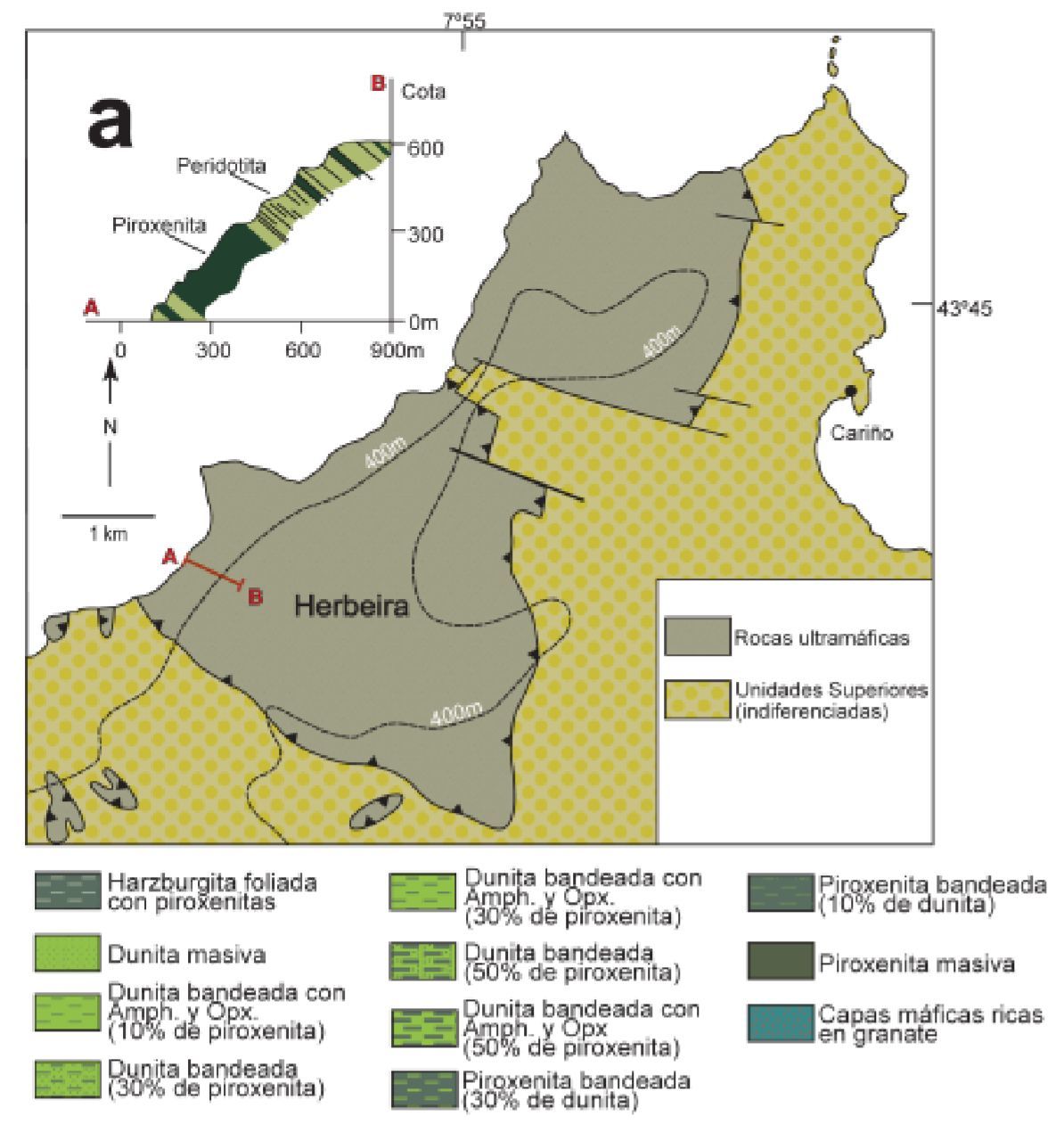2) In the WP2 (N 43 ° 43.155 W 7 ° 58.140) you can see a large rock on the ground, tell me its approximate dimensions. Is it about periodite or pyroxenites? , explains the answer very briefly