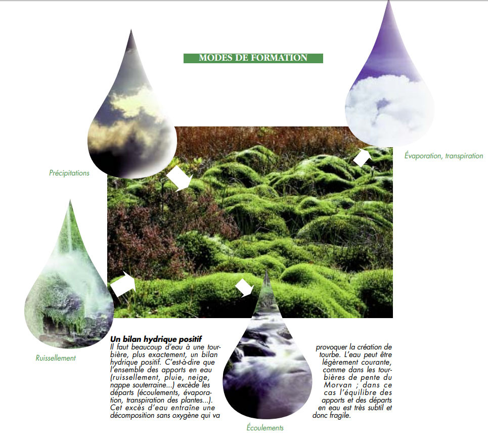 The Morvan massif, located in the center of the Burgundy region, brings to the region a little mountain air. It presents the conditions that favor the development of peatlands: a wet region where the water supply is important and regular; an acidic region where the depressions are filled with an impermeable layer.