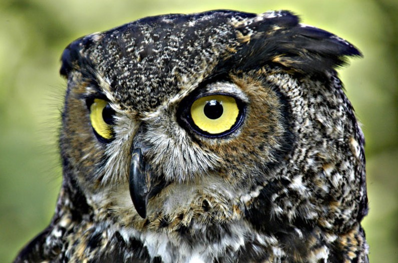The Great Horned Owl With its long, ear like tufts, intimidating yellow-eyed stare, and deep hooting voice, the Great Horned Owl is the quintessential owl of storybooks. This powerful predator can take down birds and mammals even larger than itself, but it also dines on daintier fare such as tiny scorpions, mice, and frogs. It’s one of the most common owls in North America, equally at home in deserts, wetlands, forests, grasslands, backyards, cities, and almost any other semi-open habitat between the Arctic and the tropics.