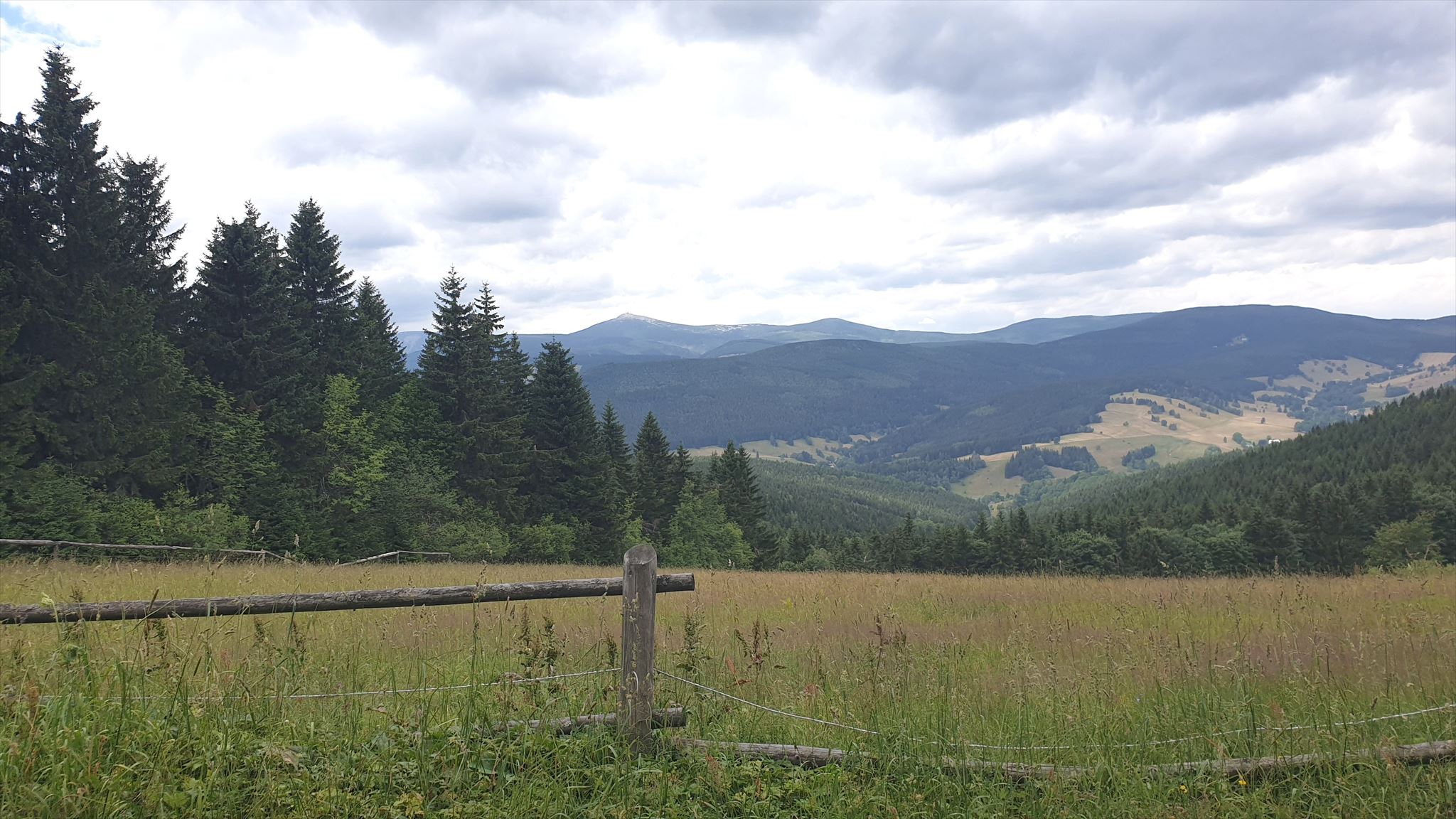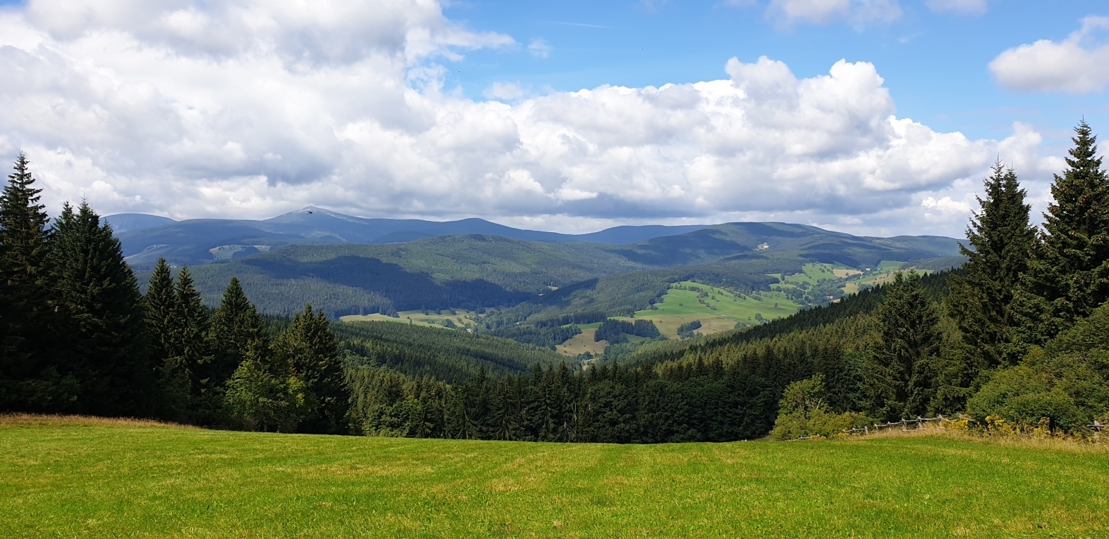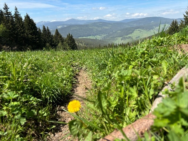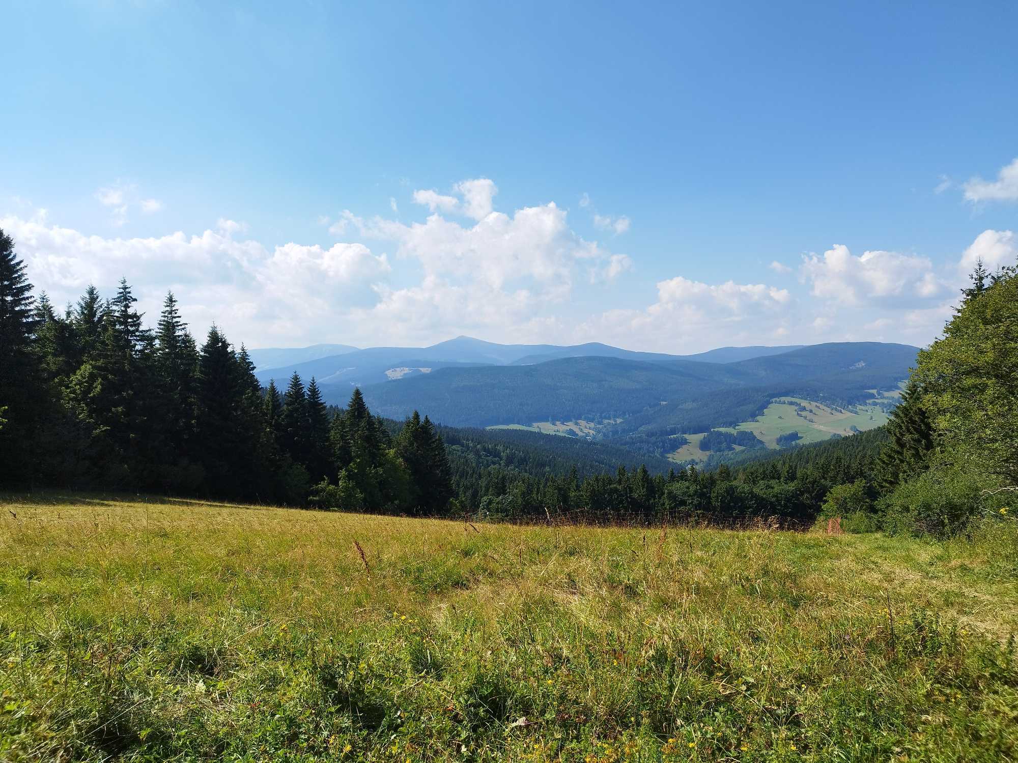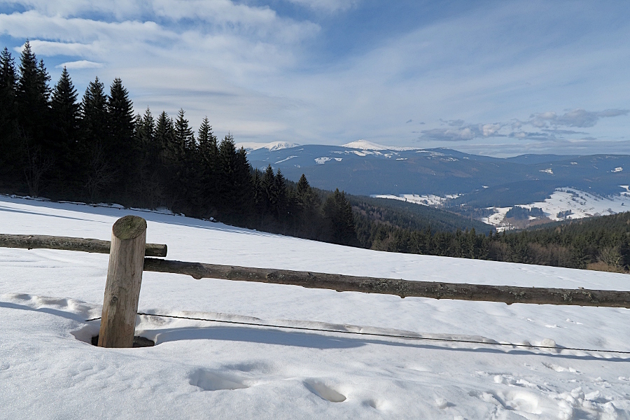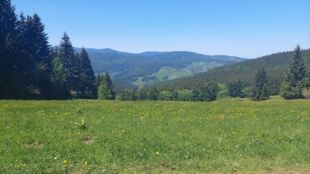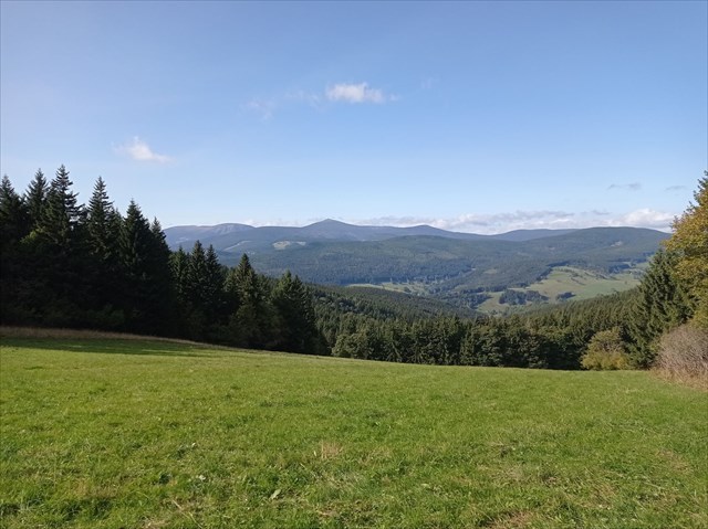 [ENGLISH]:We visited this beautiful part of Giant Mountains - Rýchory a short time ago and we were enthralled by them. So we decided to put small geocache there and invite you to to Rýchory - according to us the most beautiful part of this mountains. The cache is on the left side behind the bench behind the third larger spruce - masked by a stone. Please, make a photo if you can and post it here. Have a good time, successful treasure hunt and nice view of the highest Czech mountain. Greetings from Dzingo a ababp.