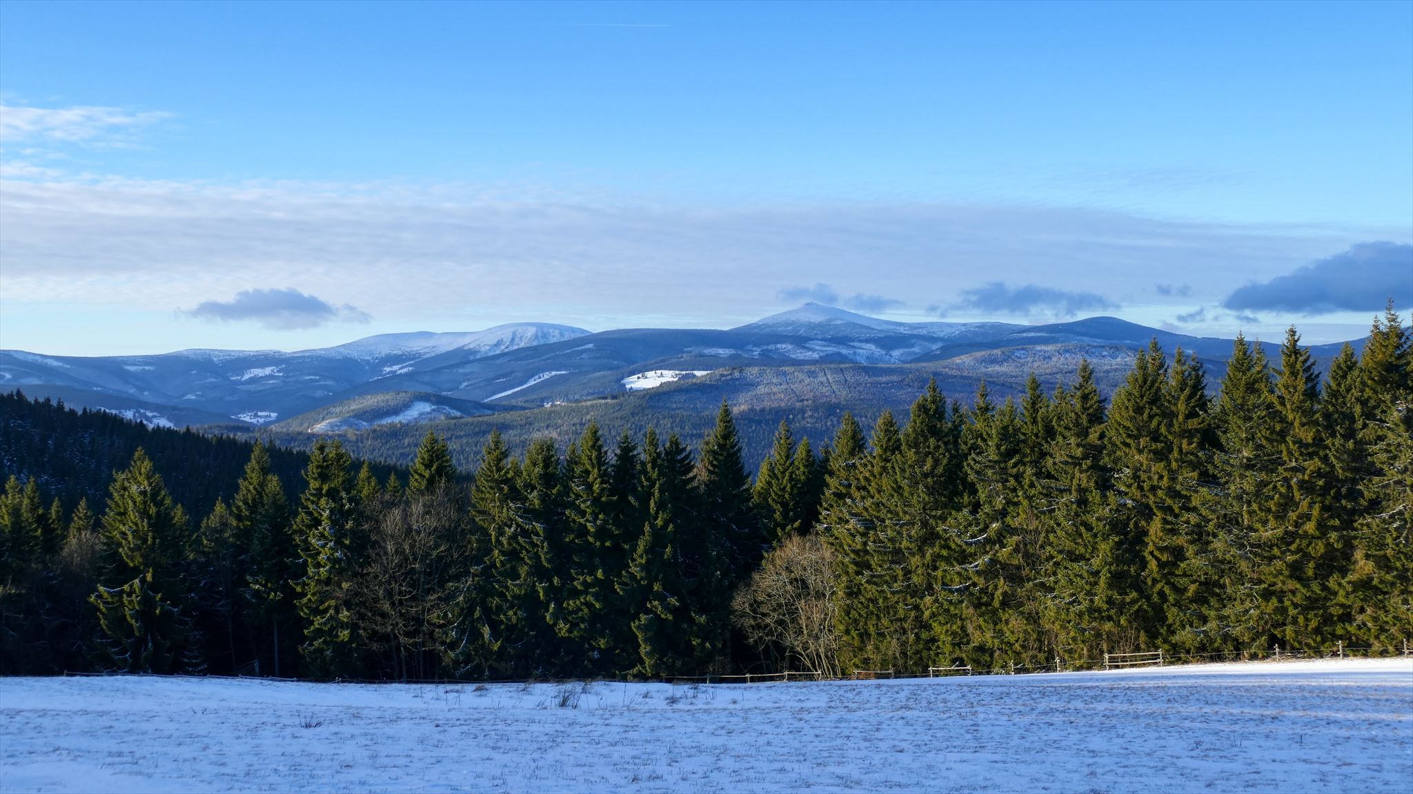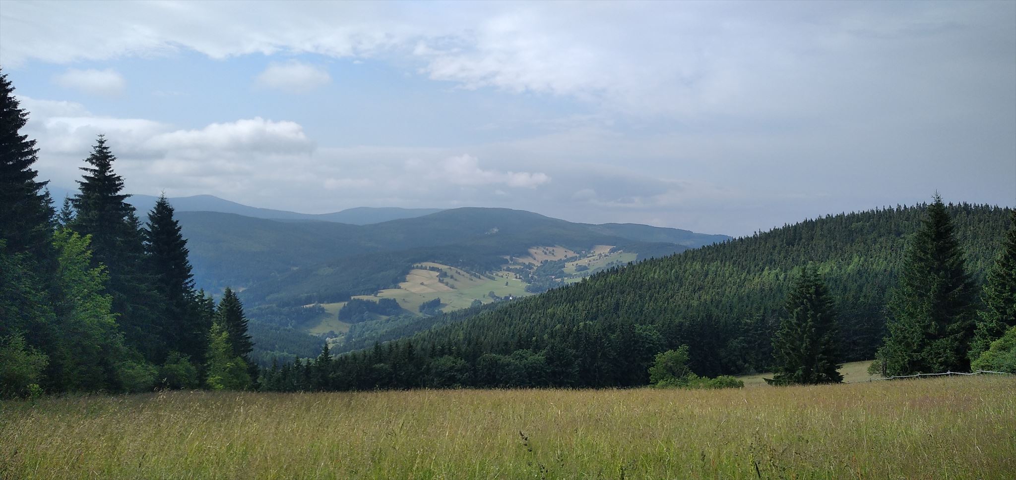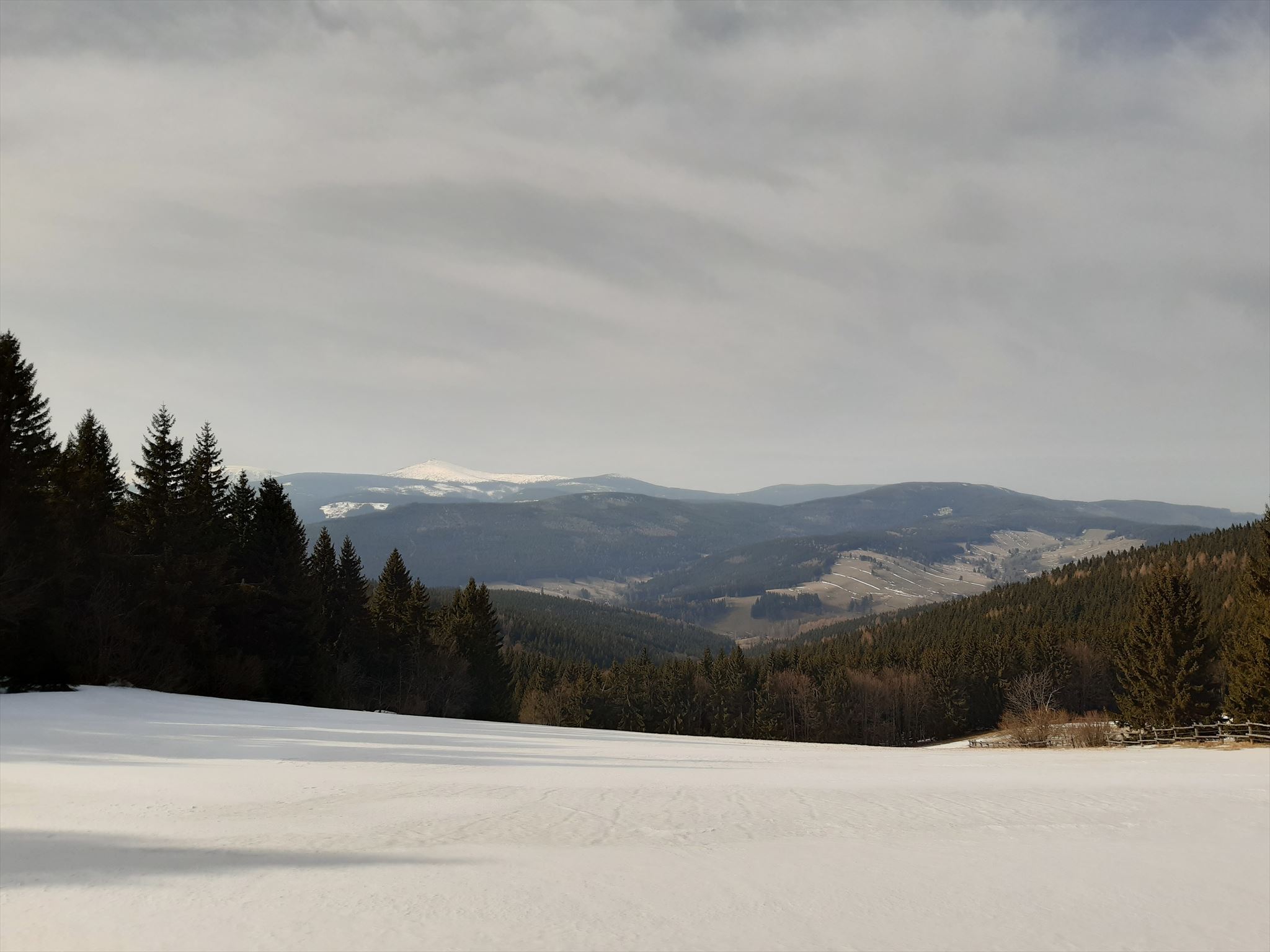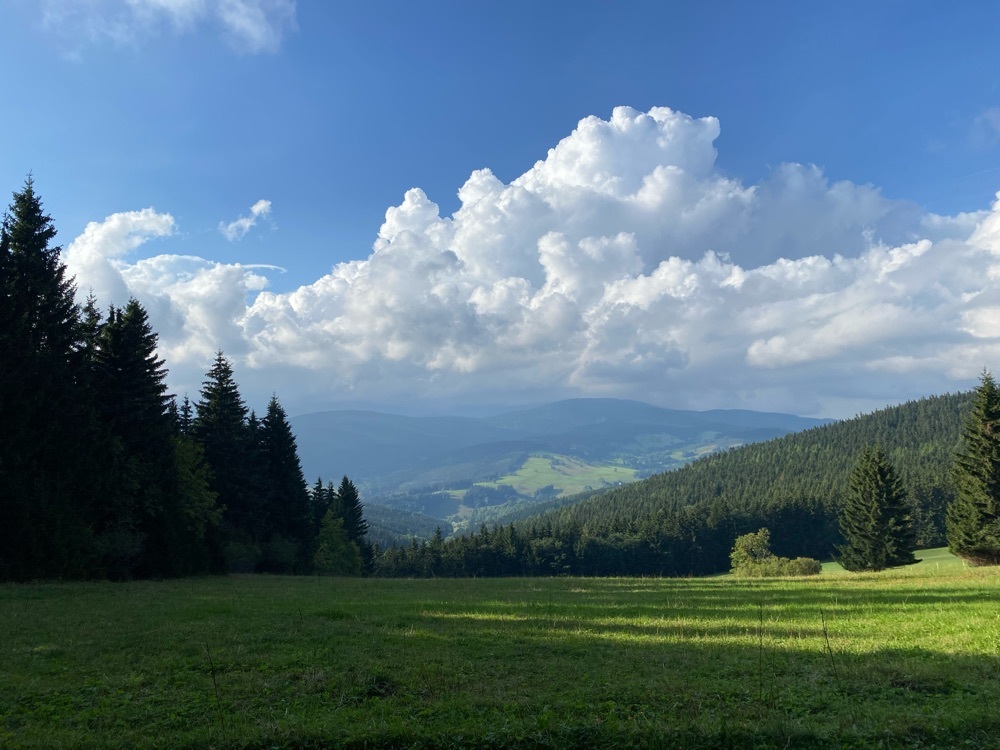 [ENGLISH]:We visited this beautiful part of Giant Mountains - Rýchory a short time ago and we were enthralled by them. So we decided to put small geocache there and invite you to to Rýchory - according to us the most beautiful part of this mountains. The cache is on the left side behind the bench behind the third larger spruce - masked by a stone. Please, make a photo if you can and post it here. Have a good time, successful treasure hunt and nice view of the highest Czech mountain. Greetings from Dzingo a ababp.