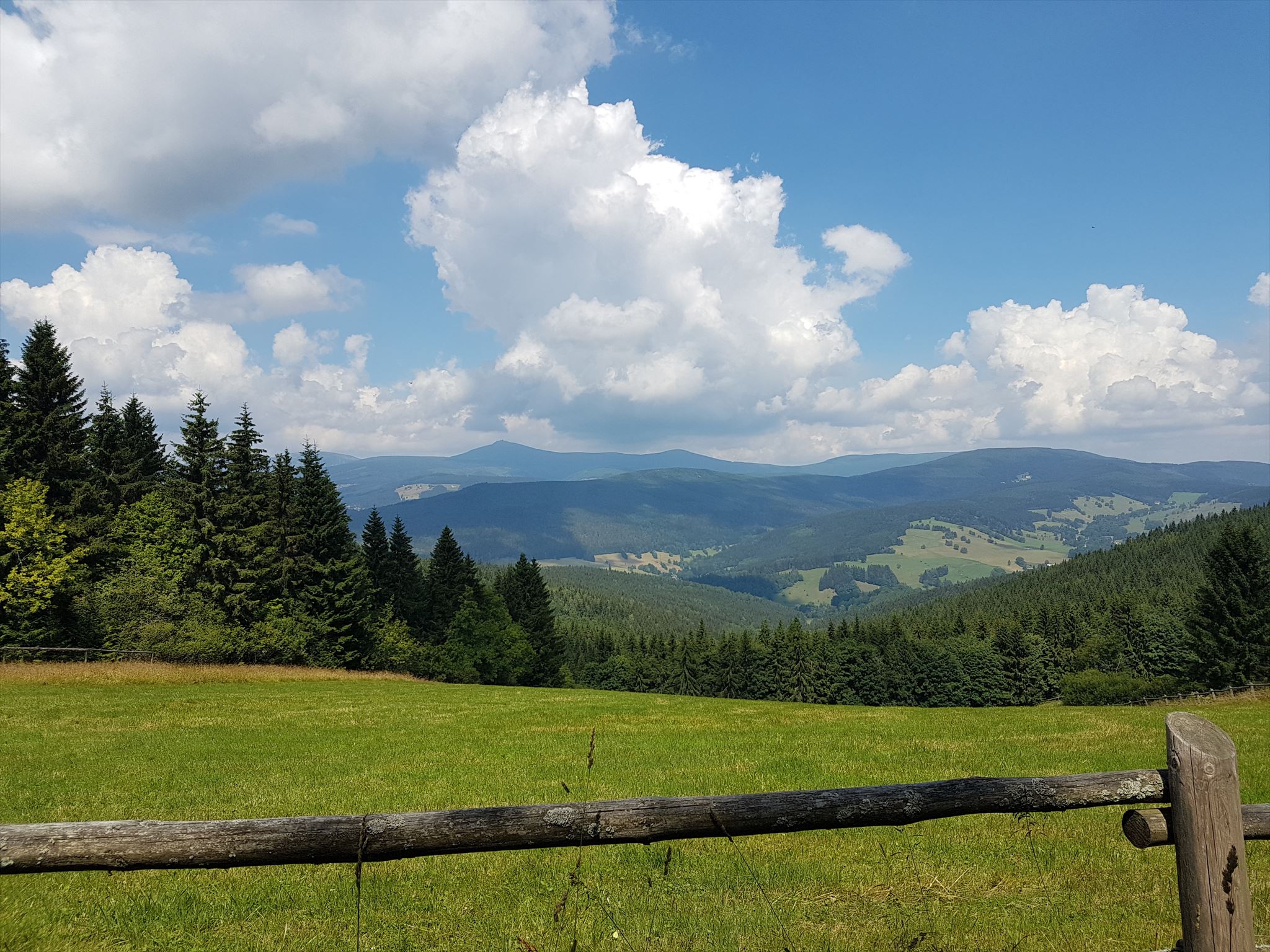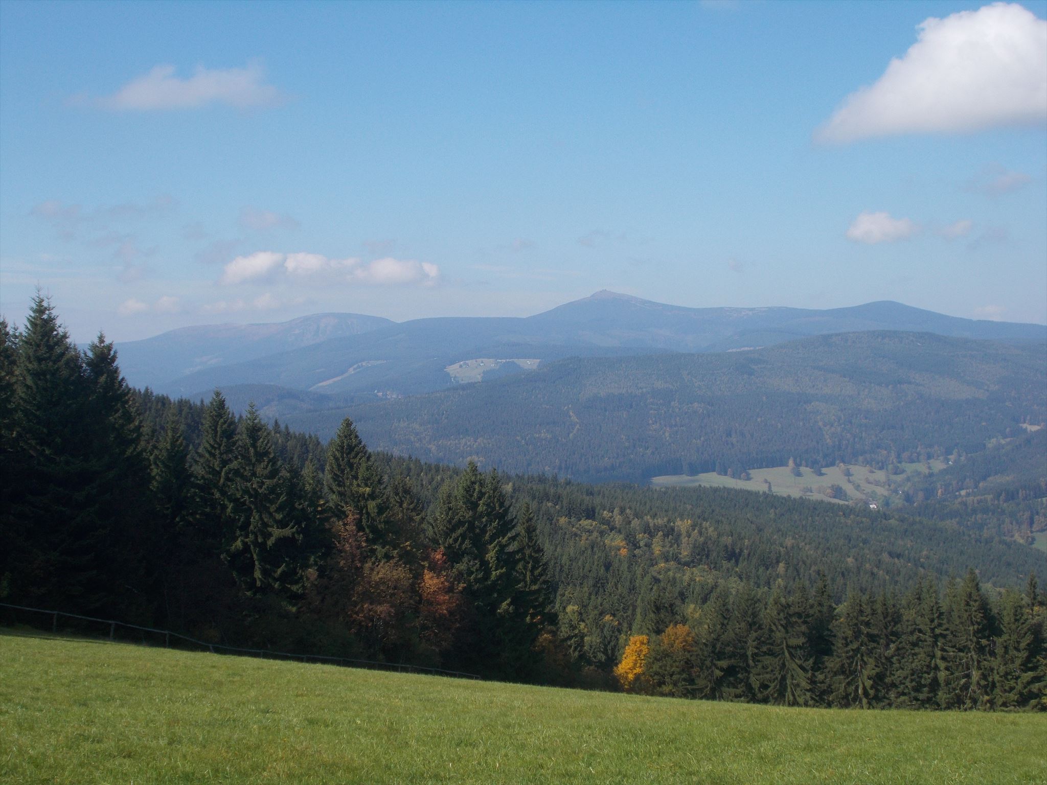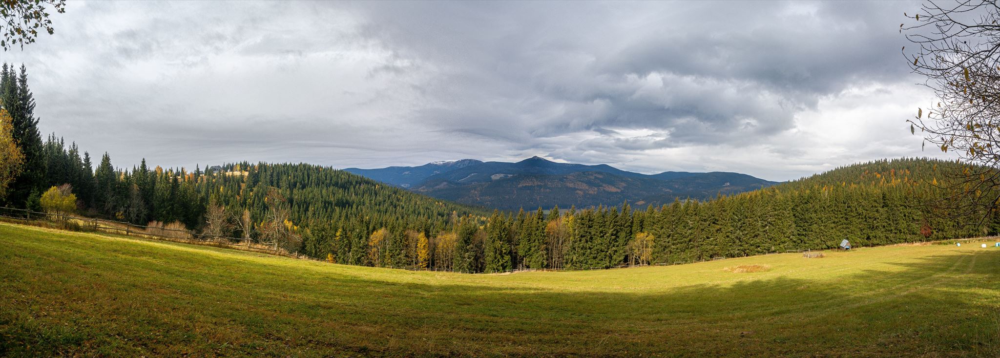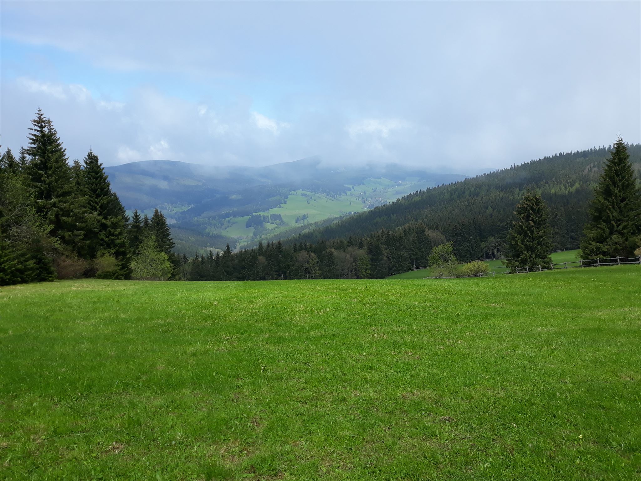 [ENGLISH]:We visited this beautiful part of Giant Mountains - Rýchory a short time ago and we were enthralled by them. So we decided to put small geocache there and invite you to to Rýchory - according to us the most beautiful part of this mountains. The cache is on the left side behind the bench behind the third larger spruce - masked by a stone. Please, make a photo if you can and post it here. Have a good time, successful treasure hunt and nice view of the highest Czech mountain. Greetings from Dzingo a ababp.