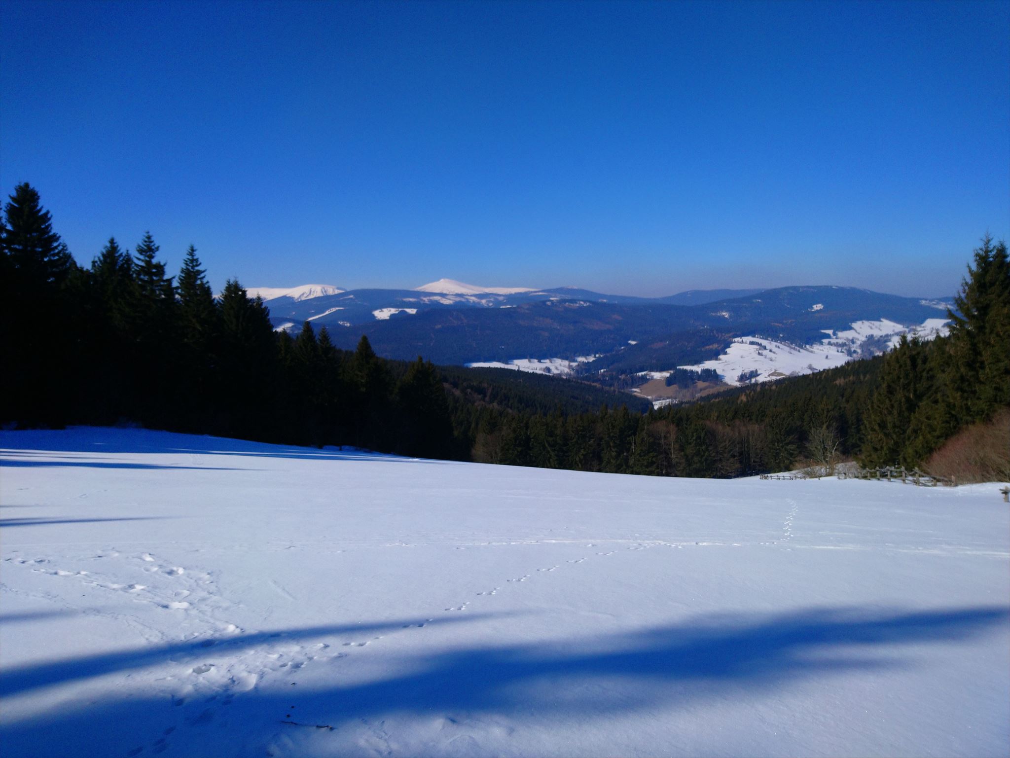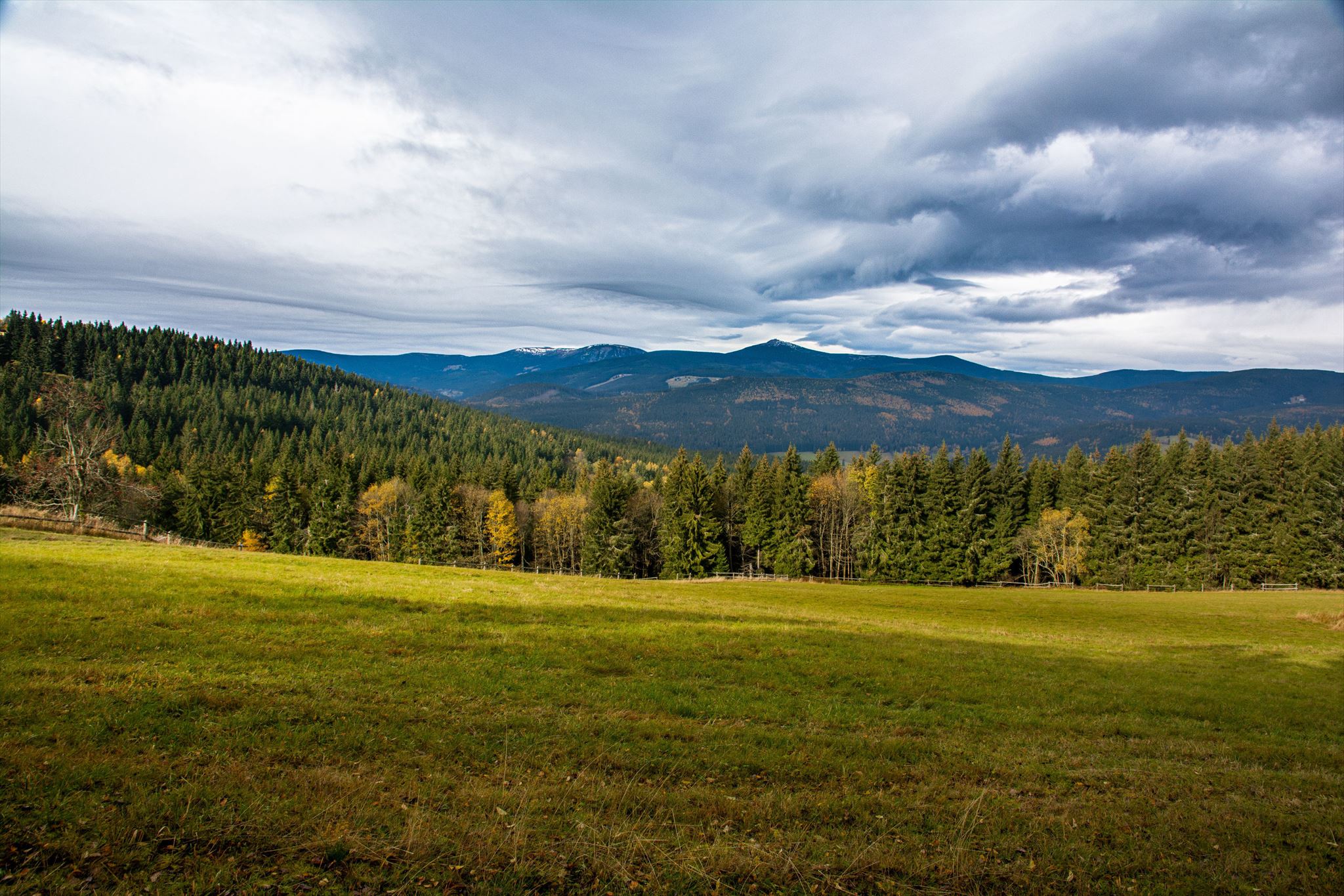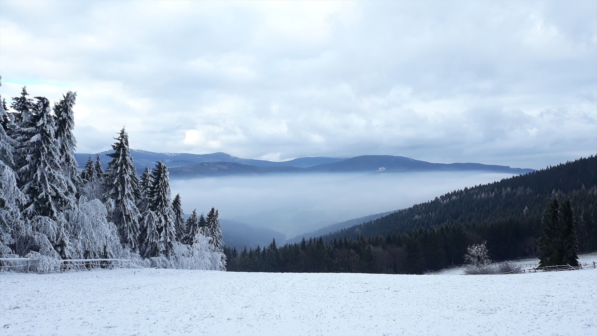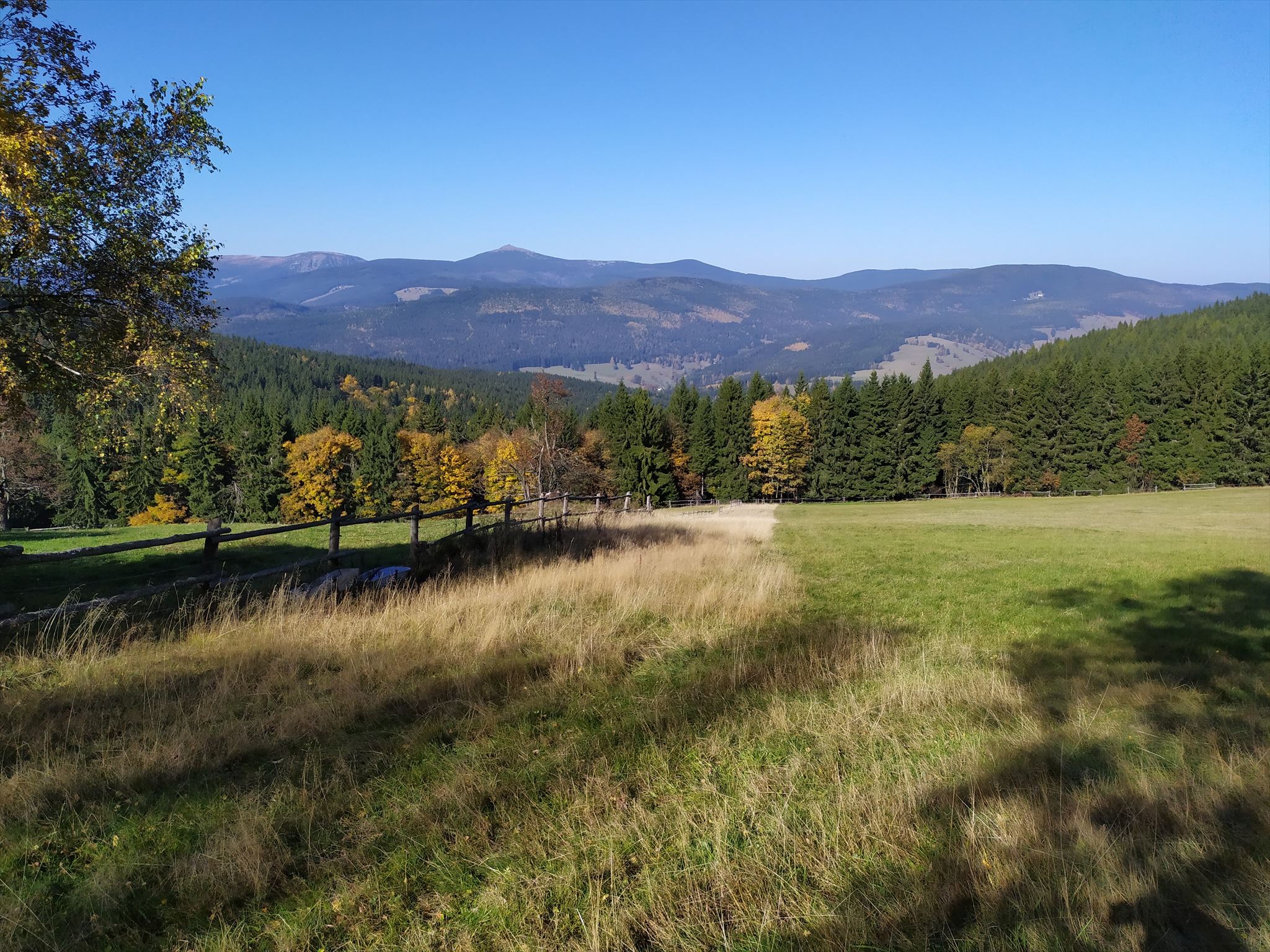 [ENGLISH]:We visited this beautiful part of Giant Mountains - Rýchory a short time ago and we were enthralled by them. So we decided to put small geocache there and invite you to to Rýchory - according to us the most beautiful part of this mountains. The cache is on the left side behind the bench behind the third larger spruce - masked by a stone. Please, make a photo if you can and post it here. Have a good time, successful treasure hunt and nice view of the highest Czech mountain. Greetings from Dzingo a ababp.