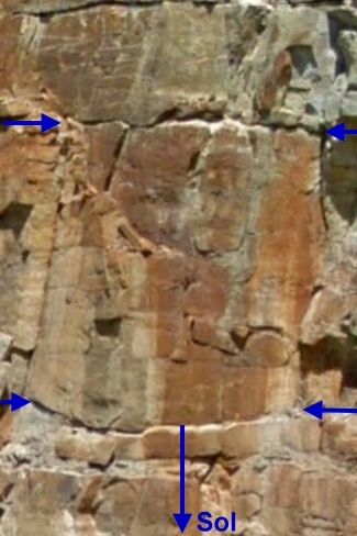 Cette formation fait partie du Groupe de Potsdam et date du Cambrien supérieur (environ 500 millions d'années). Sur cette paroi il est possible d'observer des laminations parallèles, obliques et entrecroisées indiquant un milieu de déposition fluviatile ainsi que du granoclassement.
