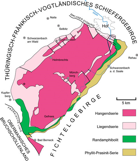 Das Serpentinit-Vorkommen am Peterleinstein wird in die Hangendserie der Münchberger Gneismasse gestellt.