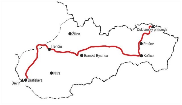 Cesta hrdinov SNP (Devín – Dukla) stúpanie 30 879 m,