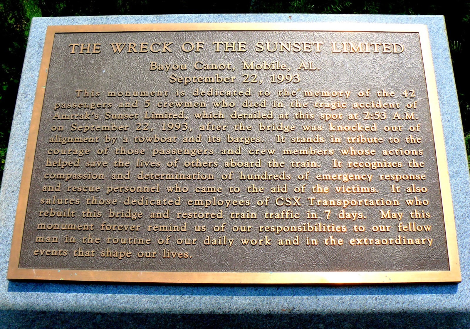 This Amtrak disaster stuck in my mind from the minute I heard of it and despite the fact I had no connection to this area at the time. I was deployed in the Persian Gulf, in UAE, September 22, 1993. We were breaking activities for lunch when the accident occurred (2:53am Central time). I heard of it by mid-afternoon. Sometimes things stick with you, seemingly, for no reason. This is one that did.
