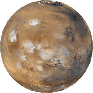 Der Mars ist ein erdähnlicher Planet, der aber einiges kleiner ist wie Erde und Venus, aber grösser als Merkur. Auf dem Mars existieren die grössten Vulkane des Sonnensystems. Aufgrund von Eisenoxid wirkt seine Oberfläche rötlich.