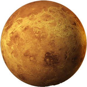 Die Venus gehört ebenso zu den erdähnlichen Planeten und ist etwa gleich gross wie die Erde. Allerding besteht die Atmosphäre fast komplett aus Kohlendioxid und der Luftdruck ist 90 mal grösser als der Luftdruck der Erde.