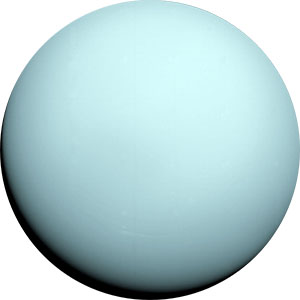 Uranus ist ein Gasplanet und sein Durchmesser ist etwa vier mal so gross wie derjenige der Erde. Er hat eine blassgrüne, gleichmässig wirkende Oberfläche.