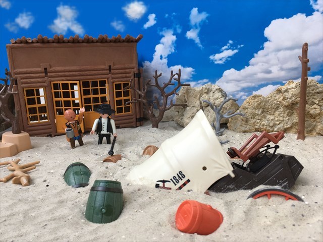 Hier seht ihr die letzte Szene einer sehr lustigen amerikanischen Westernkomödie. Was befindet sich in den Fässern? (amerikanische Schreibweise, BWW)