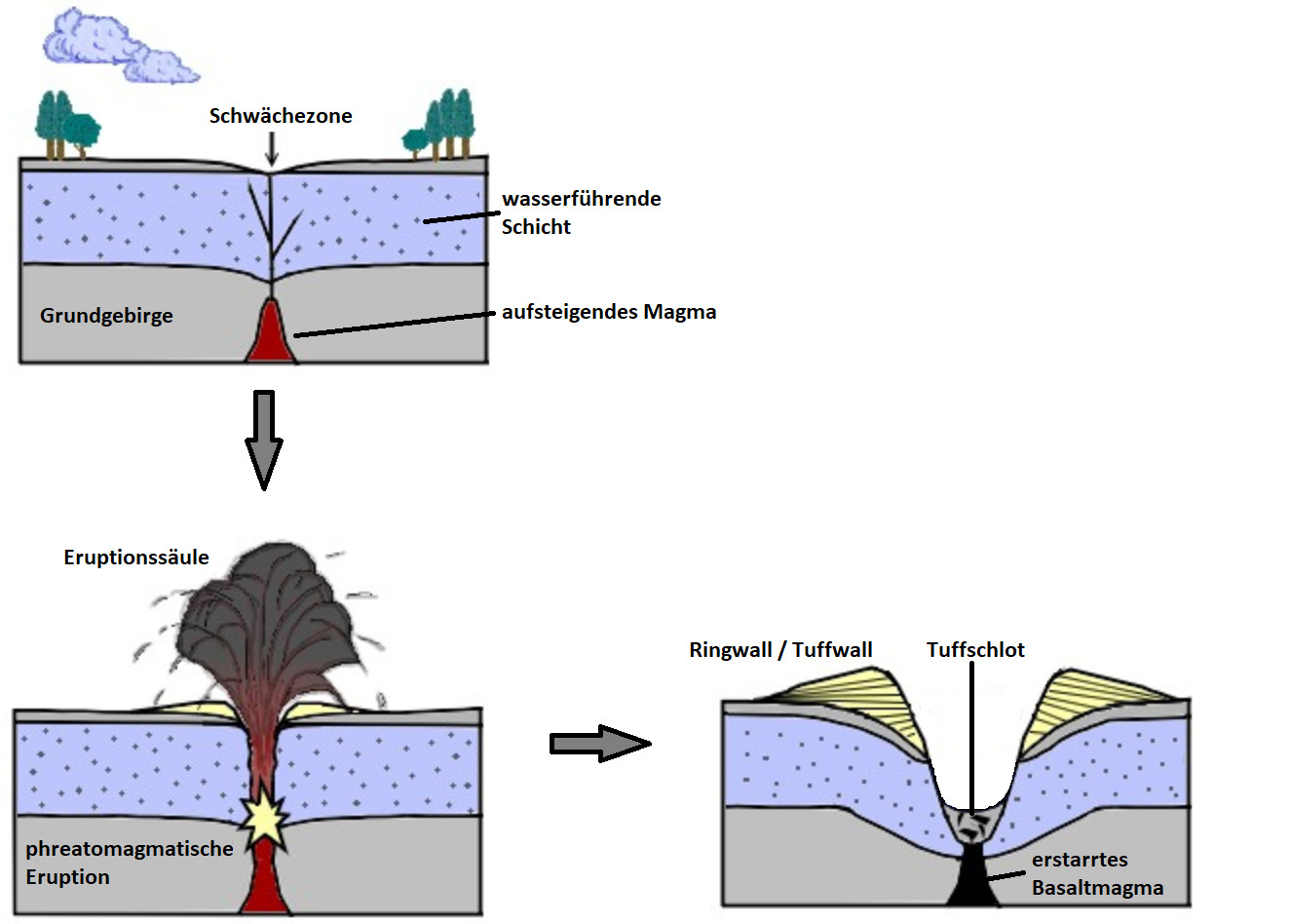 Abb. 3: Entstehung und Aufbau eines Maar4