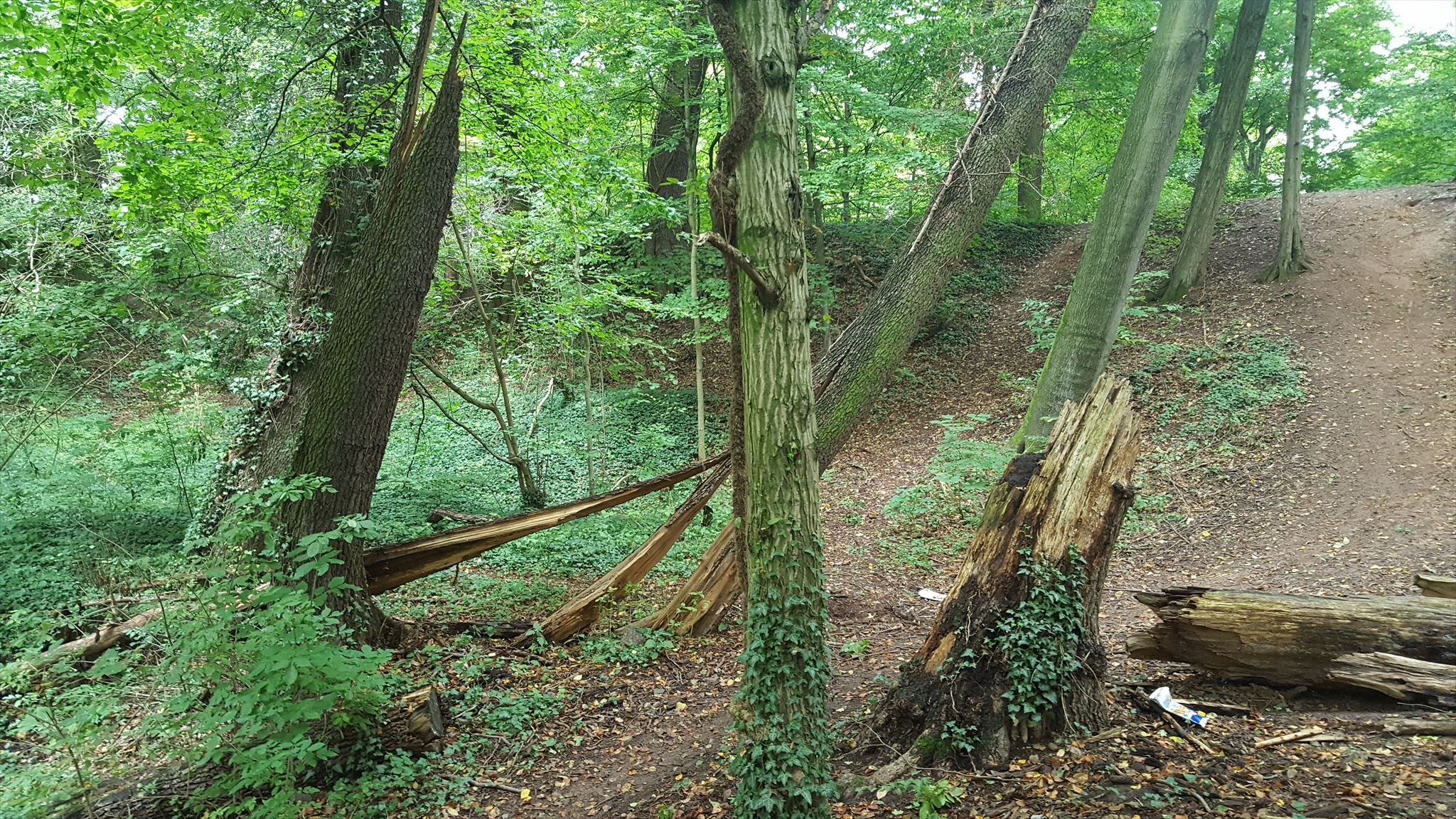 Als der frühere Vulkan Vogelsberg vor Jahrtausenden erlosch, trat an dieser Stelle noch einmal Lava hervor und hinterließ großflächige schwarze Felsstrukturen. Heute ist von den einstigen vulkanischen Tätigkeiten noch ein doppelter Ringwall in dem Wäldchen erhalten.