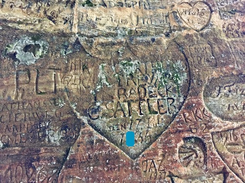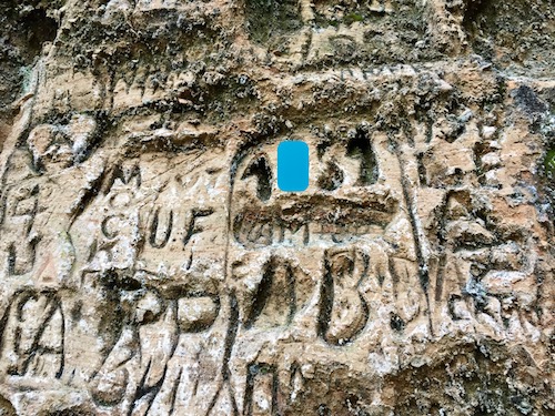 Gutmans Cave - There is a source that has been regarded as sacred and healing in the past. Cave-related story about Turaidas Rozi-Maya (1620). An ancient cult place, even in the 19th century. At first, they were still sacrificed to gods of idols. Task of letters X and P - Two photos are given, both of which are taken from the walls of Gutmans. In photo nr.1, the letter "P" is painted, but in photo nr.2 the letter "X" is painted. Find them!