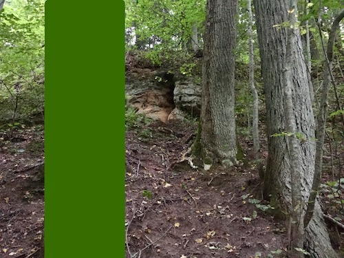 Aries forehead Cave - in Krimulda, on the slope of the main riverbank of Gauja, in the Pikenes valley. Task of letter D - Image is taken right under the cave. How many large trees are there growing in the queue in the photos painted part?