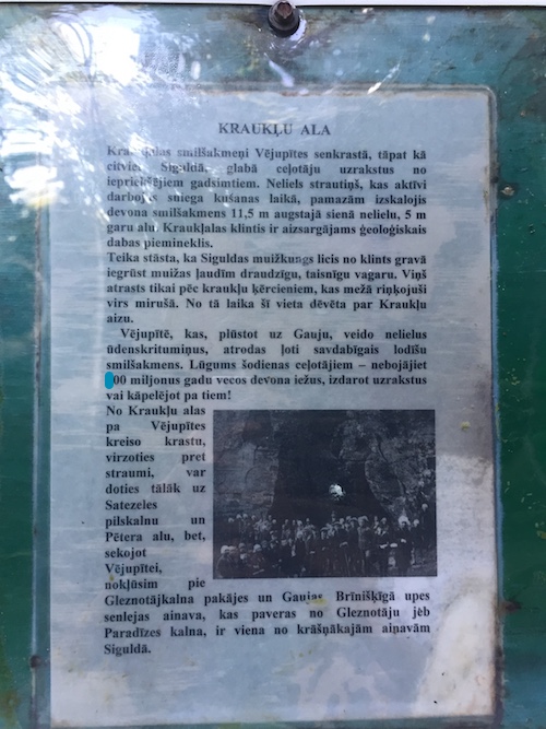 Siguldas small cave - Formerly called the Revolutionary Cave, because there have been found the revolutionary proclamations made in the 1930s. Task of letter B - What is the number on the photo that is painted?
