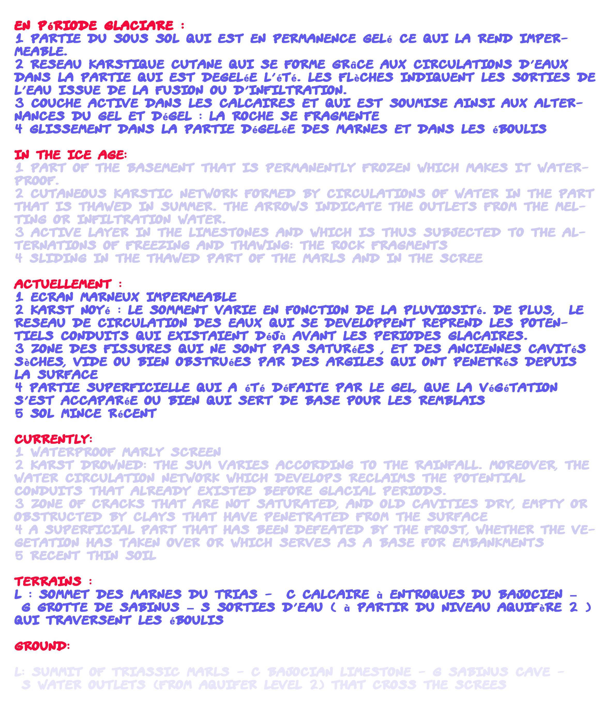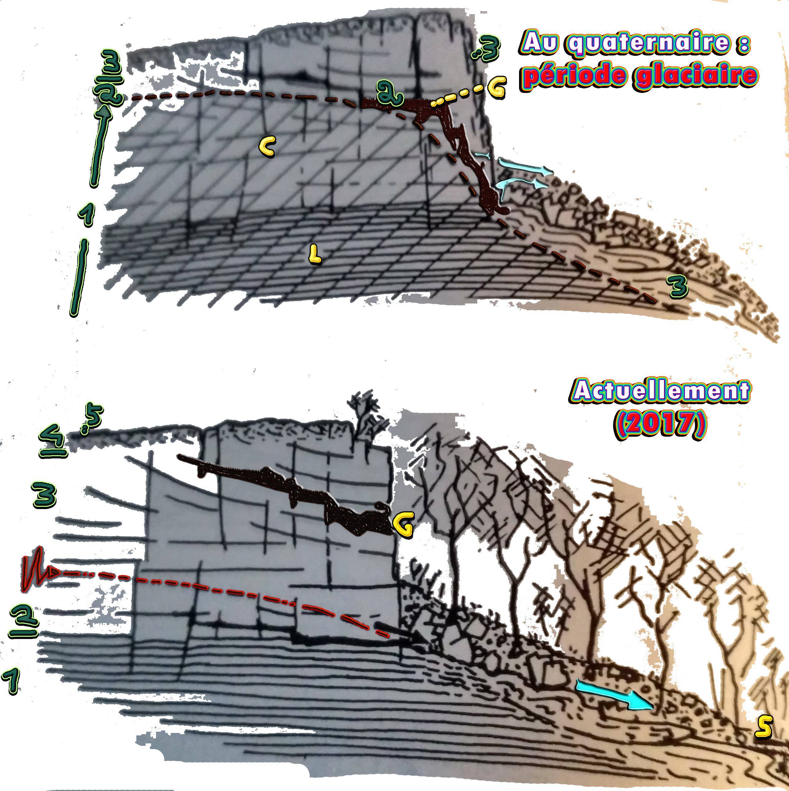 Plutot que de longues explications, je vous propose ici un schema interpretatif et son complement d'information, réalisé à partir d'un croquis des années 1960 de ce même géologue.