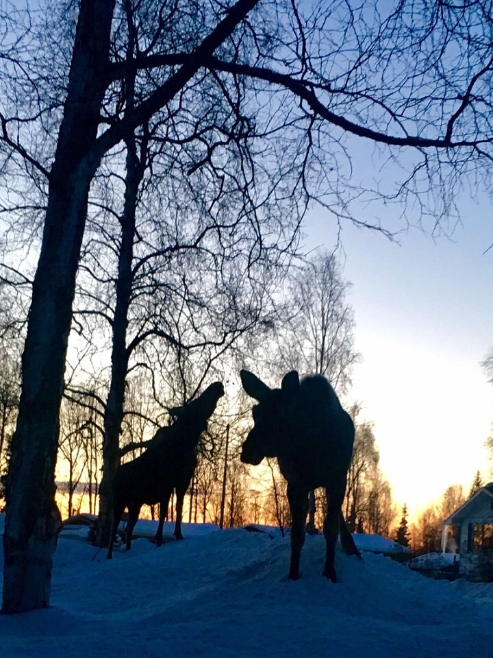 Bernie urges you to always respect any moose you encounter and give them plenty of space; never attempt to feed or approach a moose (and definitely don't let your unruly dog chase it- -Bernie would never do that!). Moose are beautiful creatures, and like the rest of us, they are just trying to eek out their survival in this arctic urban landscape.
