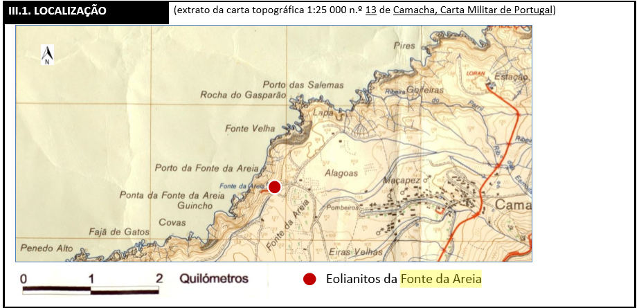 Os depósitos na zona da Fonte da Areia apresentam descontinuidade geológica planar em relação à antiga plataforma de abrasão marinha e encontram-se presentemente situados entre os 30 a 40 metros acima do actual nível do mar.