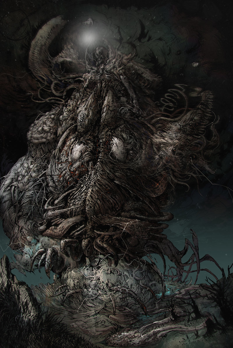Si arrivò al punto che la gente era diventata talmente curiosa da contare le bestie che pascolavano in condizioni precarie sul ripido fianco della collina sopra la vecchia fattoria, ma non riuscirono a trovare mai più di dieci o dodici esemplari anemici, dall’aria esangue. Evidentemente, qualche influsso malefico o qualche morbo, forse proveniente dal pascolo malsano o dai funghi velenosi e dal legno della lurida stalla, doveva provocare un’alta mortalità tra gli animali dei Whateley. Strane ferite o piaghe, apparentemente simili a delle incisioni, sembravano affliggere il bestiame sparso in giro; e una o due volte, nei primi mesi, ad alcuni investigatori era parso di vedere delle incisioni analoghe sulla gola del vecchio ingrigito e non sbarbato, e su quella della sua figlia albina, sciatta, dai capelli ricci.