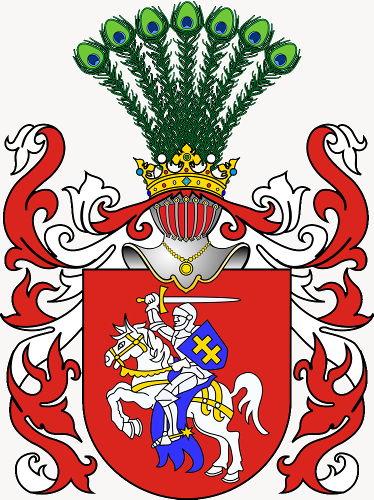 B. Pogoń — herb Wielkiego Księstwa Litewskiego, będący równocześnie tradycyjnym symbolem narodowym Litwy i Białorusi. Jego tarcza przedstawia - na polu czerwonym rycerza na koniu srebrnym, z mieczem w prawej ręce, w lewej z tarczą ze złotym, podwójnym krzyżem litewskim - godłem Władysława Jagiełły. W herbie Republiki Litewskiej (Vytis) tarcza, uprząż, siodło i pasy przedstawione są w kolorze niebieskim. Tą wersją herbu posługuje się również ród Sanguszków, dawnych właścicieli Tarnowa.