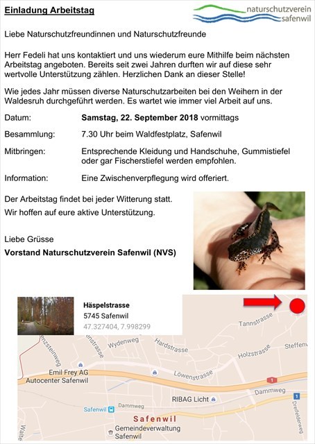 Besammlung: 7.30 Uhr beim Waldfestplatz, Safenwil