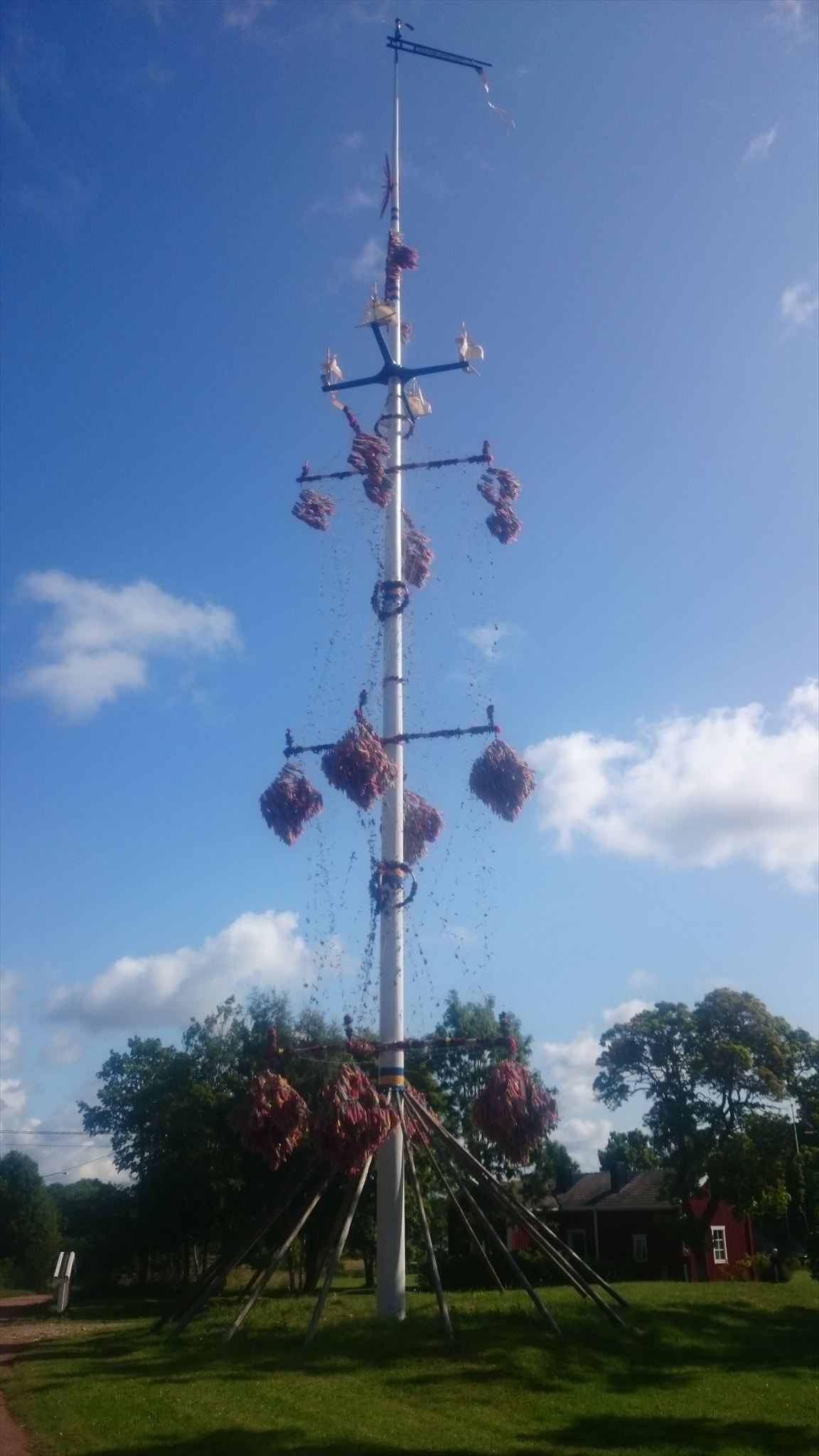 At the starting coordinates, you'll find the midsommar pole of Storby wich is one of the tallest on the island. It is one ow few still made the old fashion way. Depending the location of the pole, you'll will find different dekorations and colors.
