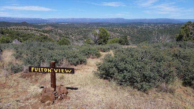 I've been hiking up on this ridge many times for the views. In September 2017, I hiked here on a Thursday, and again the following Monday, and to my surprise a brand new homemade sign had been erected in the intervening time. I'm not sure who erected it, but I'll bet his/her name was "Fulton". I enjoyed the nice view of Payson, and I'll bet you will too.