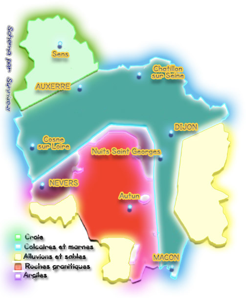La mer a recouvert toute la région durant pratiquement tout l'ère secondaire avant de se retirer progressivement. Il faut alors rappeler que l'ère secondaire comporte trois grandes périodes, le Trias, le Jurassique et le Crétacé. En quittant la région, elle a déposé des roches sédimentaires qui ont déterminé la composition des sols bourguignons.