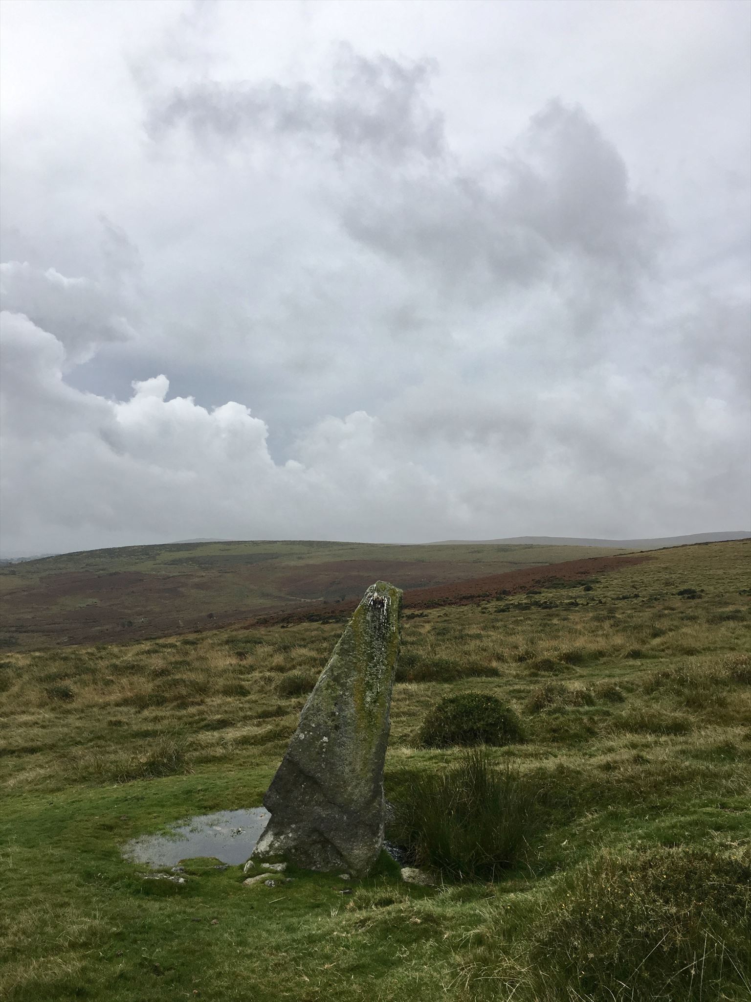 Sometimes known as Harbourne Man, The Longstone or The Dagger this Bronze Age Menhir or Standing stone lies 150 metres from the head of the Harbourne River. Above ground it stands at 2.4 metres high and leans to the west.