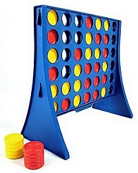 Règles : Le jeu se pratique avec une grille verticale, traditionnellement de 7 colonnes et 6 lignes. Chaque joueur joue alternativement en laissant tomber un de ses jetons du haut d'une des colonnes. Ce jeton remplit donc la plus basse case inoccupée de la colonne. Le vainqueur est le premier à obtenir un alignement de 4 jetons (horizontalement, verticalement, ou en diagonale). Il est possible de remplir la grille sans qu'aucun des 2 joueurs n'ait gagné... il y a alors match nul.
