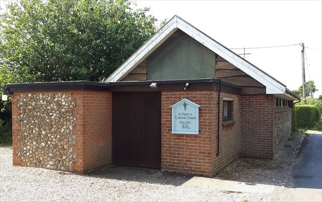 Apparently there was a garage on the site where the church now stands. When the owner died the building and land was given to the Catholic diocese and the church was built.