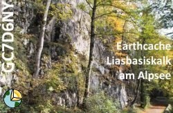 Above the Alpsees lies an easy accessible outcrop in the colorful Liasbaselime (Hierlazkalk, Adneter Fazies). The weathered limestones are usually compact and form a striking, partially cliff-lined rock face. The wall is vertical and forms partially overhangs. [Translation of Text from Bayrisches Geotopenkataster]