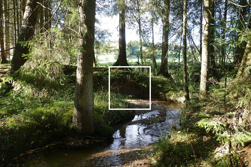 2.) Ihr sollt nun überprüfen, ob hier tatsächlich einmal ein See war. Geht dazu an dem kleinen Bach entlang und schaut euch das Bachbett an. Findet ihr tatsächlich den Seeton von dem oben im Text die Rede ist? Am Wegpunkt "Aufschluss" sollte die Frage leicht zu beantworten sein. Untersucht nun den Seeton etwas genauer. Nehmt ein bisschen in die Hand und beschreibt seine Beschaffenheit (Farbe, Härte, Bestandteile, usw.). Vergleicht bitte den Seeton oberhalb und unterhalb der Wasseroberfläche (Fühlen!).