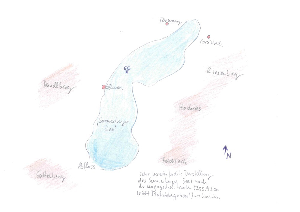 Das Eis ist damals langsam von den Rändern her abgeschmolzen und hat, vom zentralen Eiskörper aufgestaut, einen See gebildet: den Samerber See. Die mitgeführte "Gletschermilch" aus staubfeinen Steinchen/Tonmineralen setzte sich als blaugrauer Seeton ab und verhinderte, dass das Wasser in den Boden einsickern konnte. Da beim Abschmelzen sehr geringe Fließgeschwindikeiten herrschten, konnte sich so die feinen Tonpartikelchen in Ruhe ablagern.