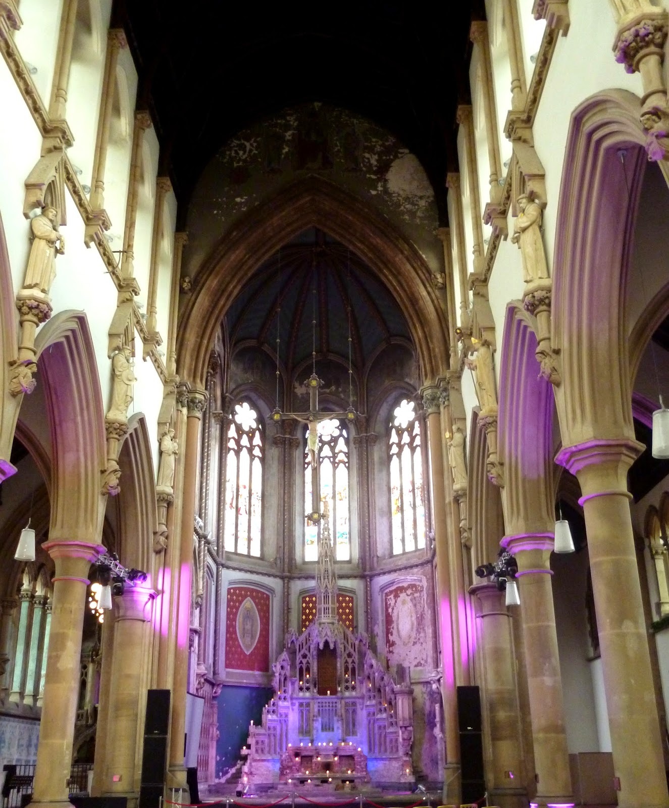 It is a miracle that it survived and this is entirely down to the volunteers and local people set up a preservation trust to save the building as it is today. Among the items that the housing developers stripped out were the sandstone statues of twelve saints that stood high on either side of the church. They turned up in a Sotherby’s catalogue in 1994 as desirable ‘garden statuary’ and would have been sold but for the determination of a volunteer and Manchester City Council. After a protracted battle, the statues were returned to Manchester, but that was just the beginning. They needed extensive restoration work through funds raised by the trust. They were only recently finally returned to their place in the monastery. The church and associated friary buildings underwent a £6 million restoration programme supported by funds from the Heritage Lottery Fund, English Heritage and European Regional Development Fund. The initial project was completed in June 2007 when the restored buildings opened as a venue for conferences, business meetings and community events. The building is also used for a range of concerts.