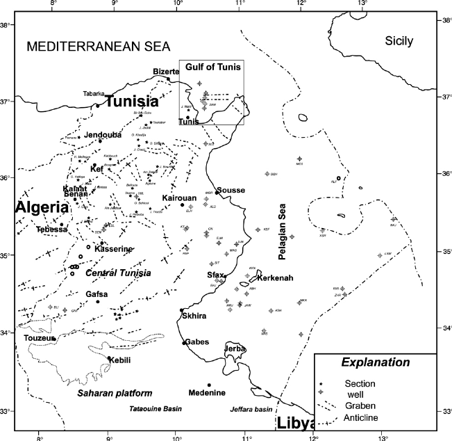 The Gulf of Tunis is located in northeastern Tunisia (Fig.1), west of the Sicilian segment of the Apenninic–Maghrebian Orogen. The strata beneath the Gulf of Tunis constitute an offshore basin that developed during the Neogene Africa–Europe collision (Dart et al. 1993; Lentini et al. 1996; Catalano et al. 2011).