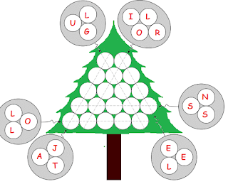 Hver bokstav i hver julekule skal bare brukes en gang.