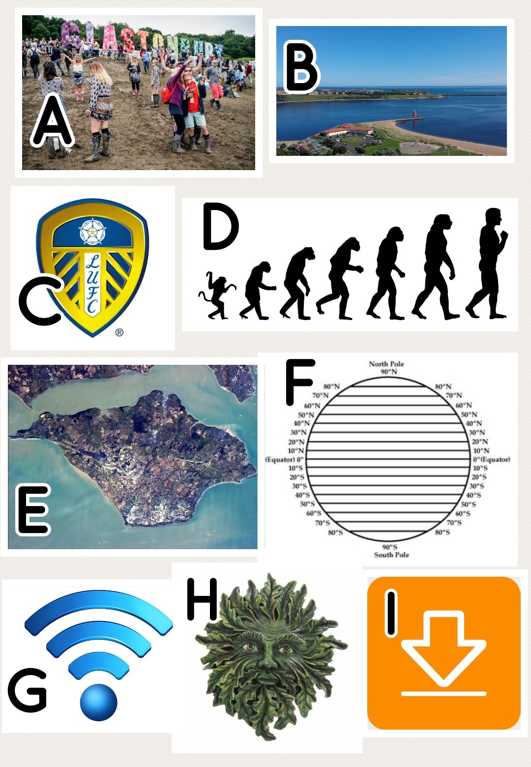 This cache is placed to honour festivals in all of their glory. The mud, the wellies, the hangovers, the atmosphere, and the amazing mix of music and people to be found at them. So here is a nice easy puzzle for you all to solve from the images below. Once you have worked out what each picture represents you need a number to take forward to the calculation below.