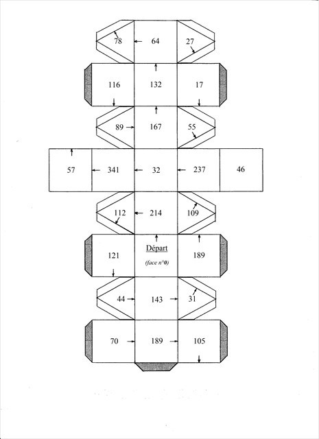il suffit d'additionner les nombres figurant sur les différentes faces en effectuant le parcours flèché à partir de la face n°0.