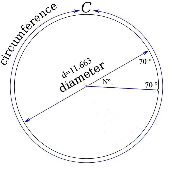 Notes from new CO, (11/14/25): Assume the 70 degrees in the top image are the angles formed by a chord between the two points. Use 3.14 for Pi.