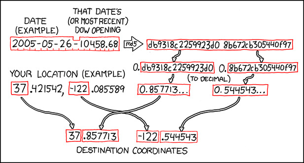 Geohashing ist ein Outdoor-Navigationsspiel, das von Randall Munroe erfunden und in seinem populären Web-Comic "XKCD" beschrieben wurde.