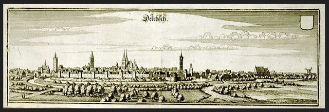 Stadtansicht Delitzschs um 1650; Quelle: de.wikipedia.org/wiki/Delitzsch